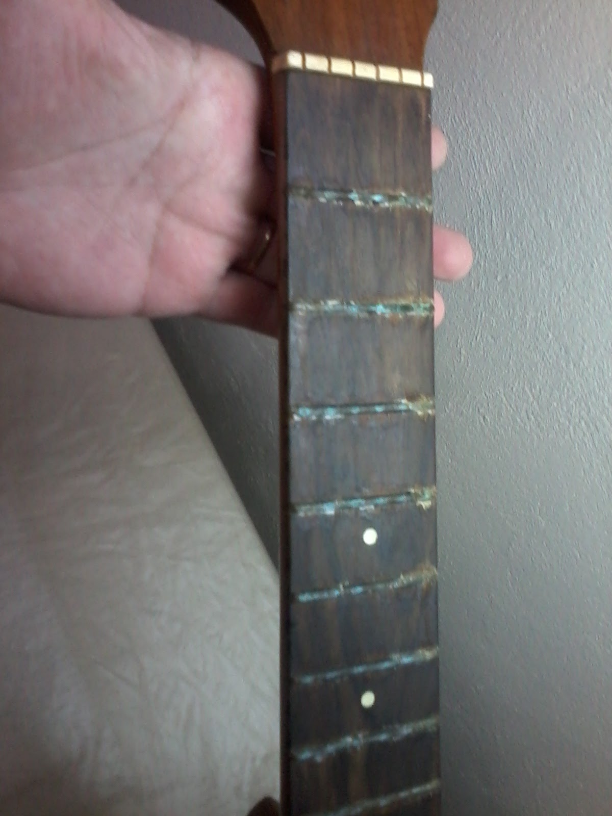 Violão Giannini - Colagem do tampo, colagem do tróculo, limpeza da escala, polimento dos trastes.